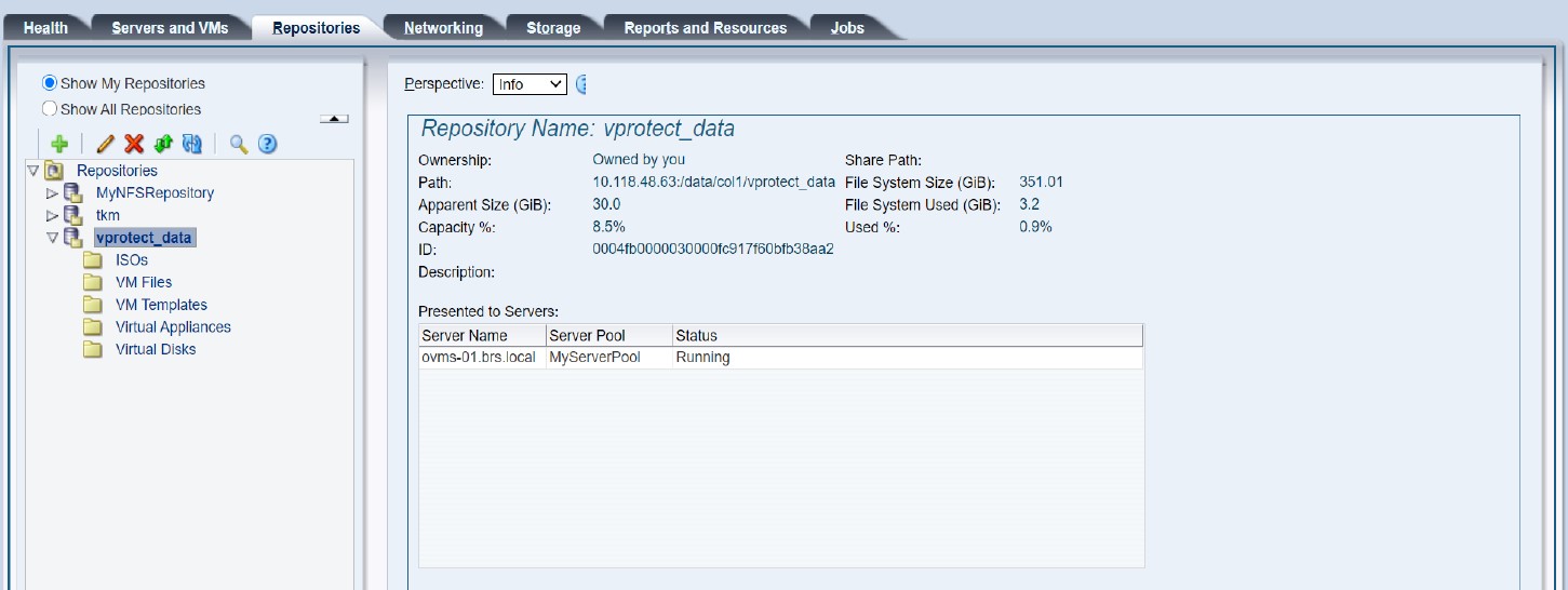 • The directory under / vprotect_data needs to be the same name as the OVS server pool name