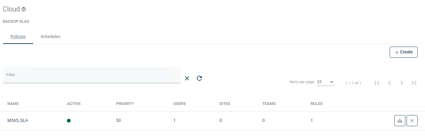 A schedule defines when and on which days cloud instances should be backup. To define a new schedule, open Backup SLAs under the Cloud section and go to the Schedules tab, then use the button.