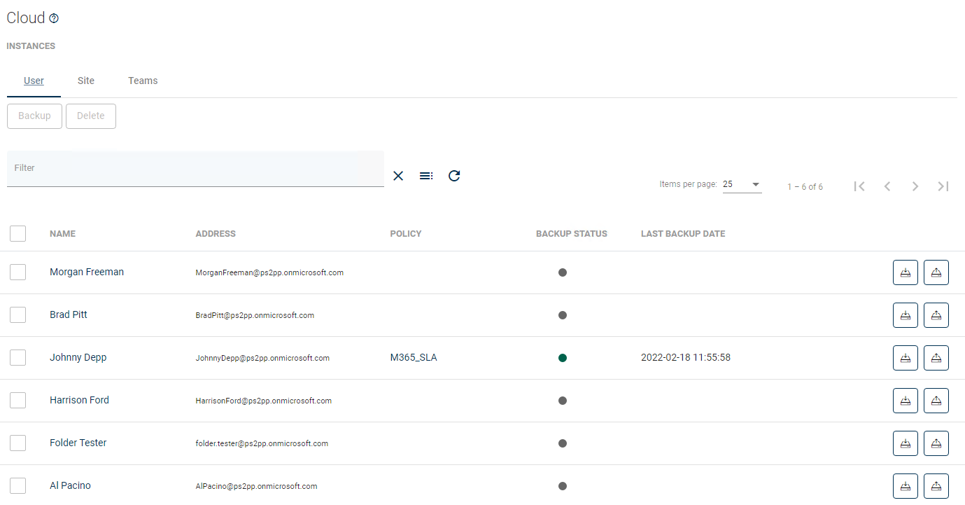 In this view, you can see all users and sites, and teams synchronized (imported) from the defined organization (Microsoft 365)