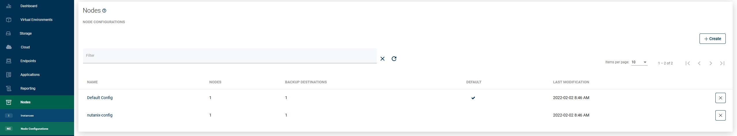 This section is used to add/remove backup destinations to the nodes using this configuration. Only backup destinations enabled here can be used by the nodes.