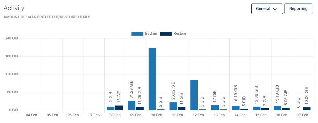 From here, you can set a date range or go to a detailed summary of backup, restore jobs, and backup size.