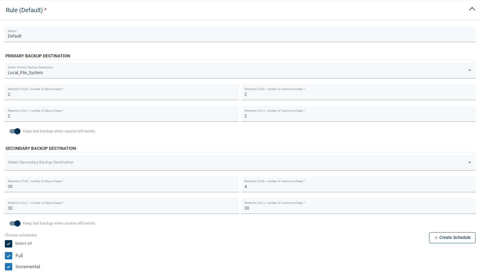 You can also set here Retention settings for your backups. You can use a number of days and versions for full and incremental backups.