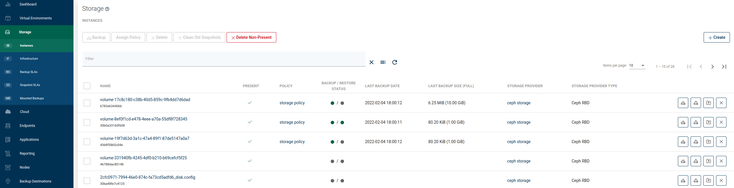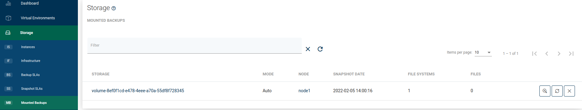 To mount backup, go to the Instances tab under the Storage Providers section on the left side menu, then click on the mount icon next to the chosen storage instance