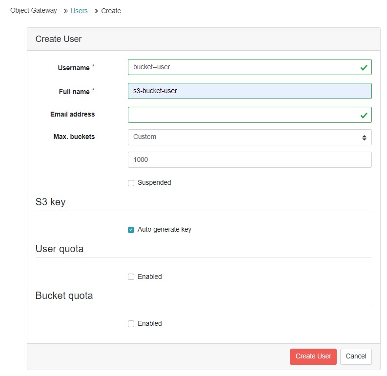 Now create a dedicated access account for the backup destination. Open the Users tab under the object gateway menu.