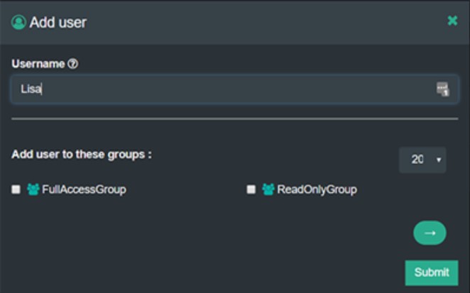 Enter the user name and make sure to check the box for FullAccessGroup.