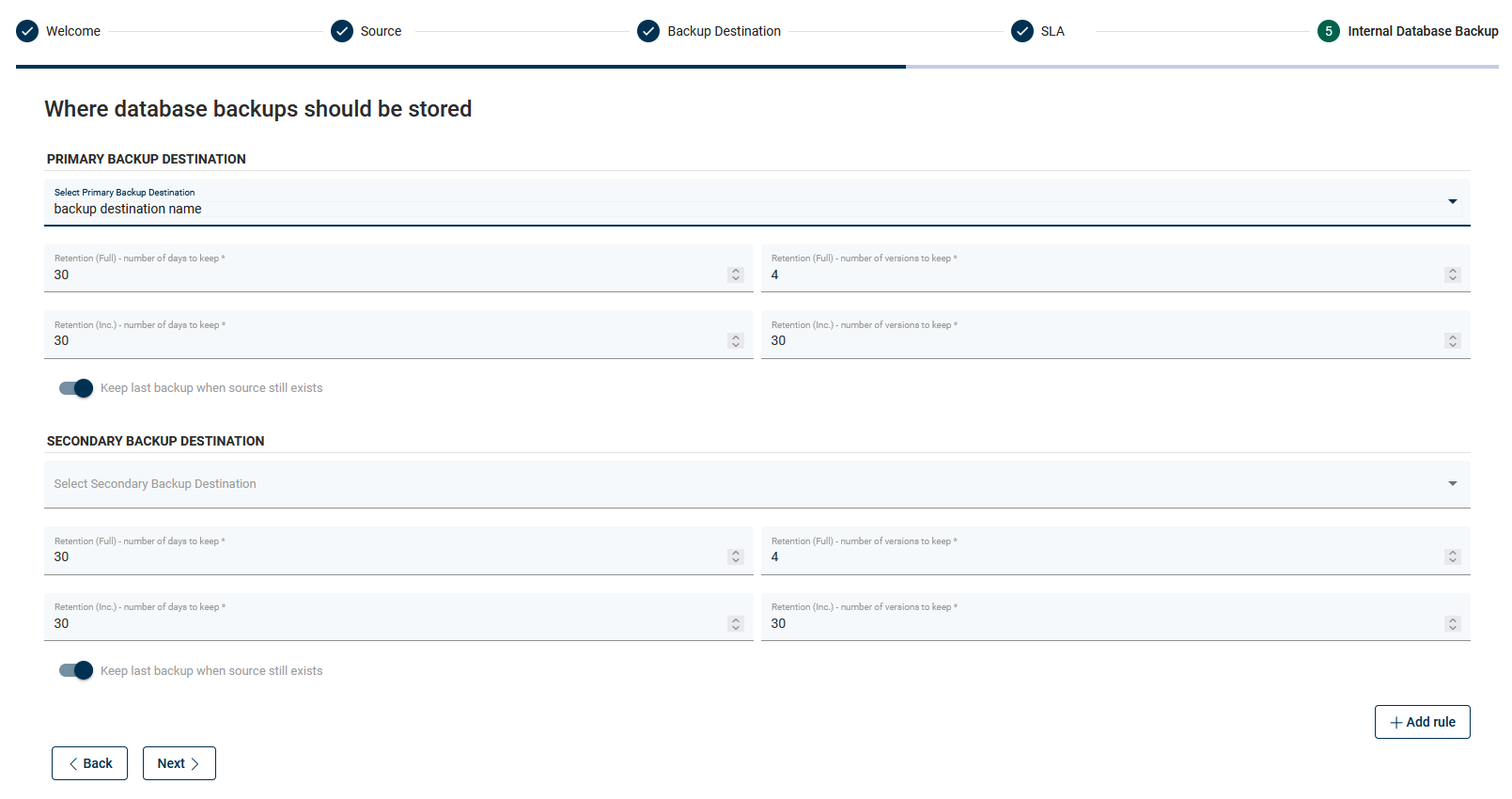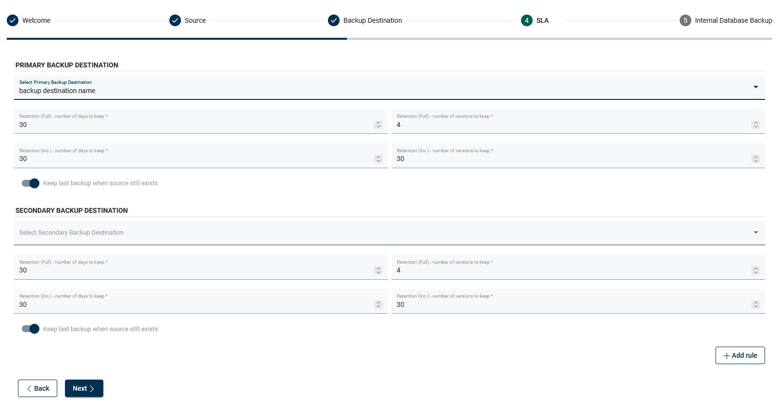 In the next section, you can add a backup destination. In this case, you can also repeat the whole process so that you can add multiple providers using the wizard.