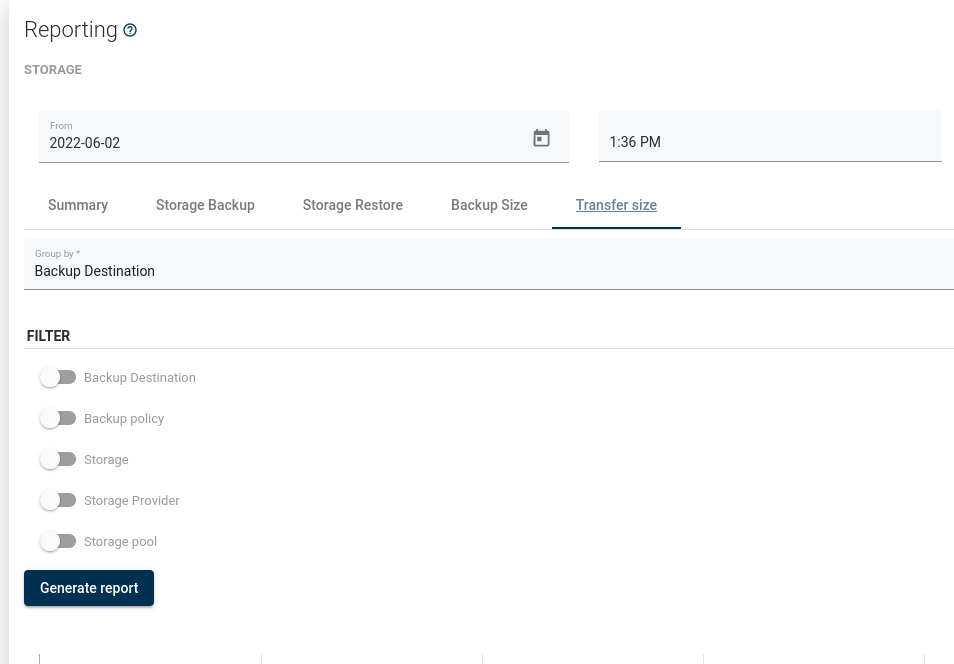 From here, you can set a date range or go to a detailed summary of backup, restore jobs, and backup size.
