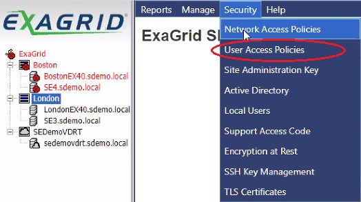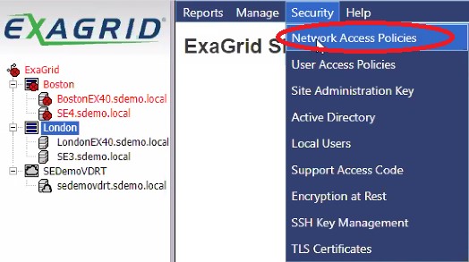 To create a network share, log in to the Exagrid dashboard and go to Manage -> Shares.