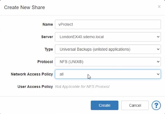 Then create a new share. From here, you can create an NFS or CIFS share, depending on the protocol you choose.