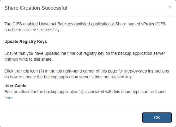 DPX vPlus supports integration with Exagrid. You can create two types of shares (NFS and CIFS), but in this case, we recommend using a CIFS share as the backup destination.