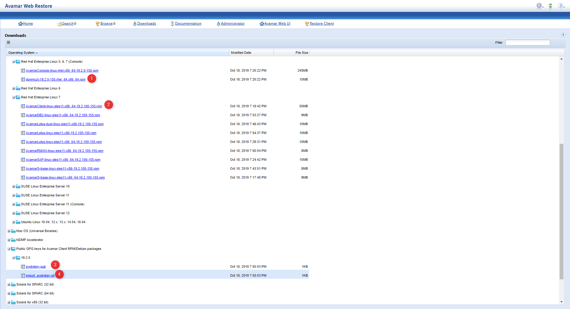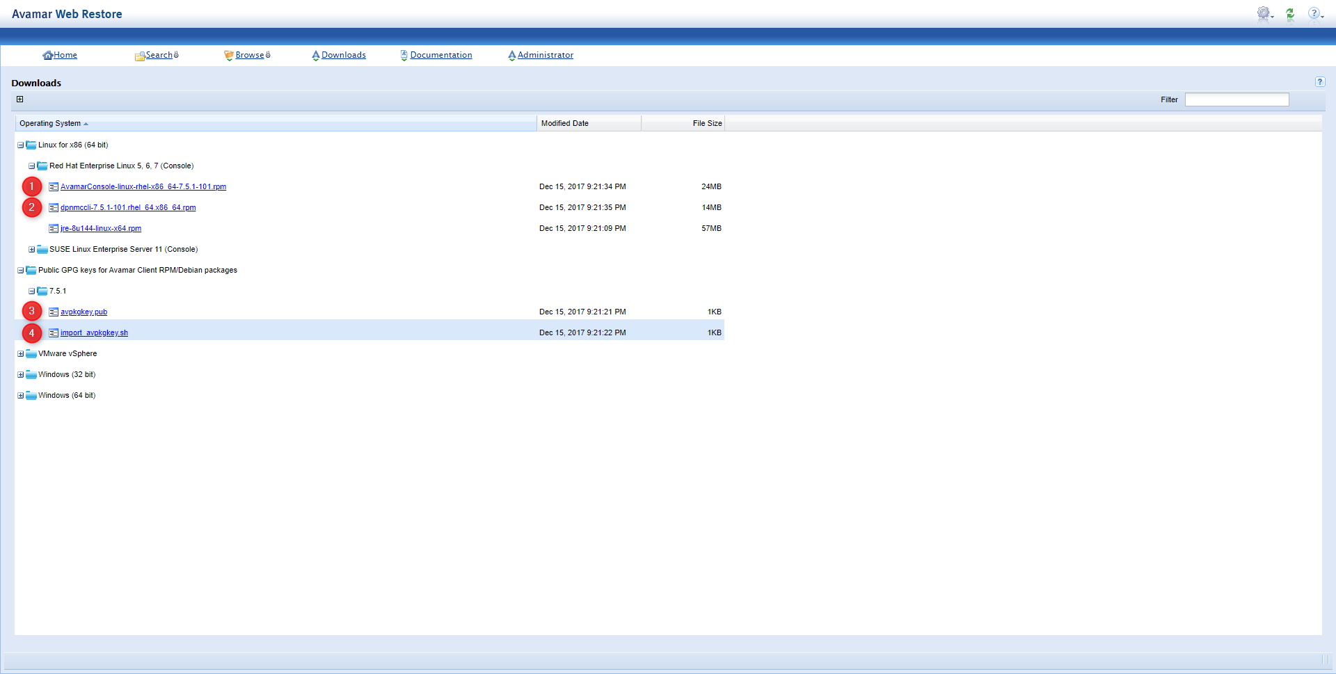 You can obtain the above by browsing the downloads section of your Avamar server installation, provided you have installed 'UpgradeClientDownloads" from the EMC repository to the Avamar server. When in doubt, consult the Avamar documentation.