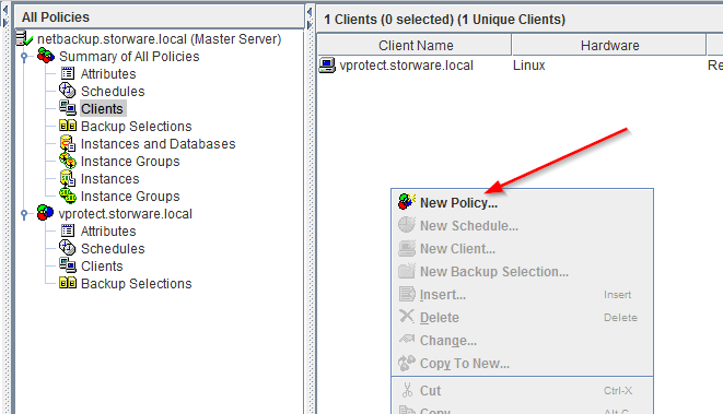 - To add a new client, we need to create a policy rule for it where we will configure the type and schedule of this client backup. The client will be added automatically after the creator finishes.
