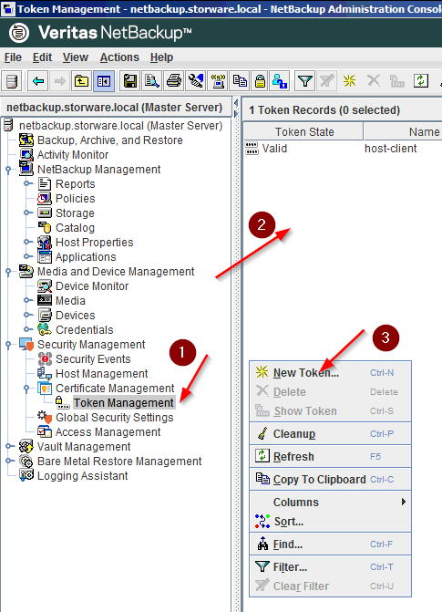 - After successful login, please click on the “Token Management” submenu under “Certificate Management”. Next, click the right mouse button on the empty space and select “New Token…”.