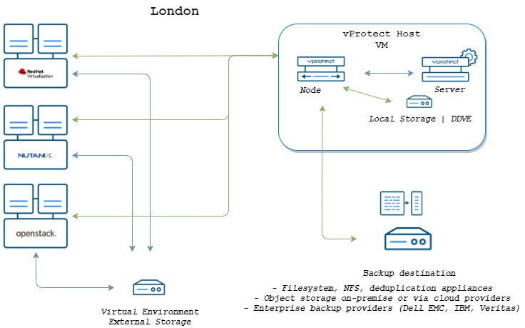 In this scenario, DPX vPlus (server and node) can, for example, be deployed as a VM using any of the installation methods.