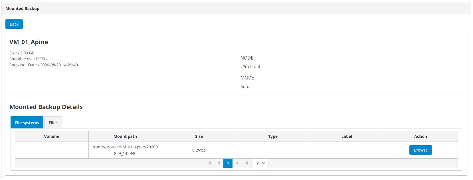 Finally, you can also browse your mounted backups from the oVirt dashboard. You only need to enter the backup details using the menu on the right.