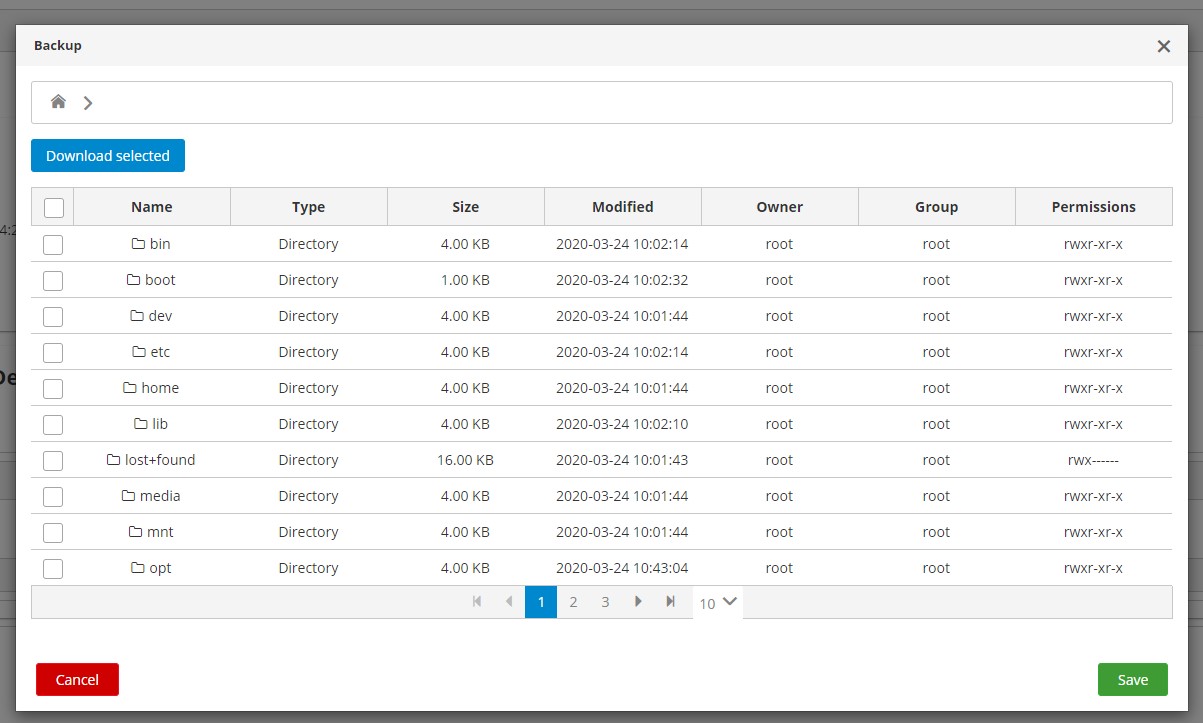 Just select a folder or file and then press the "download selected" button to have the files on your computer.