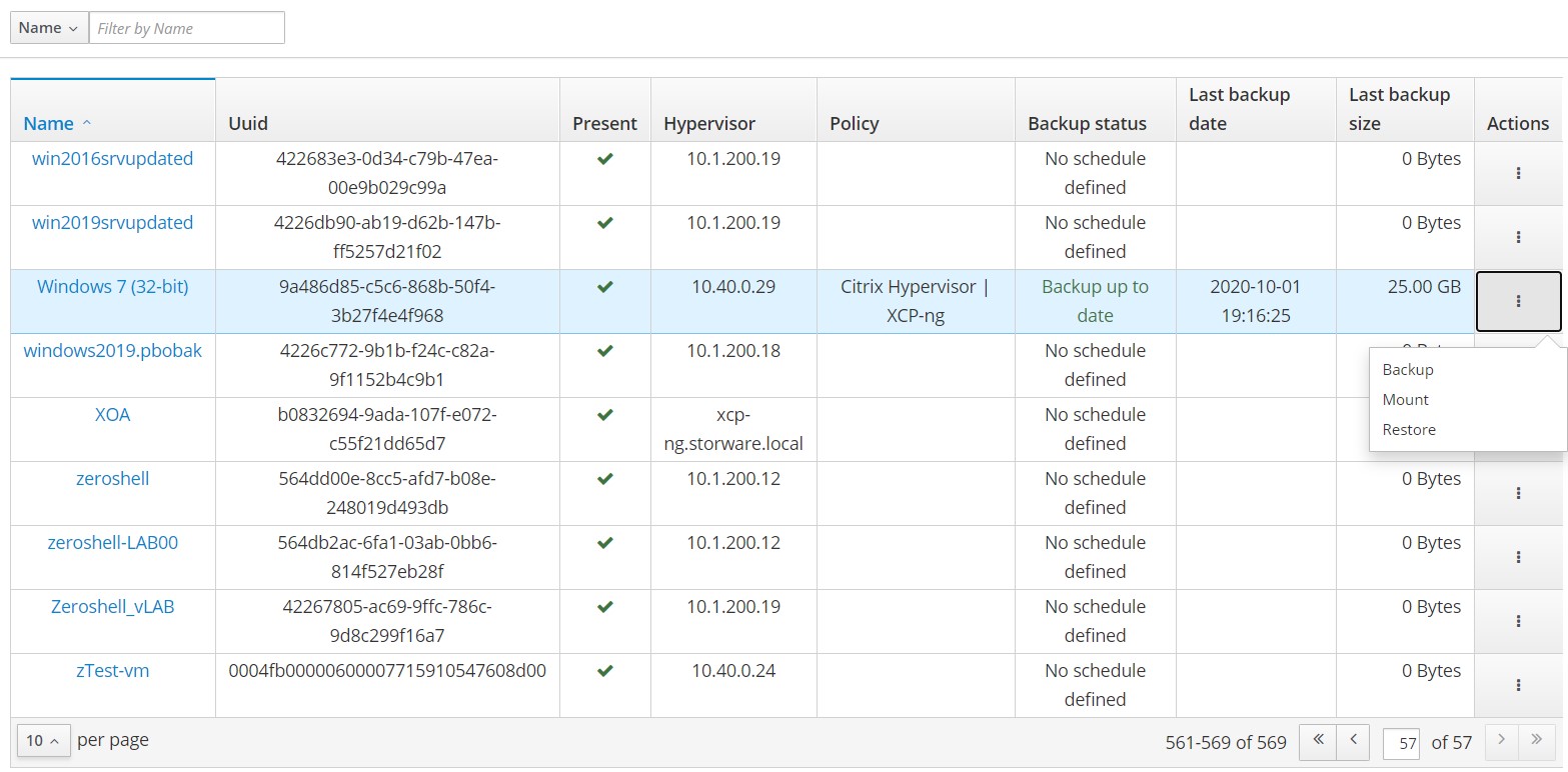 This tab shows all inventoried virtual machines in your oVirt environment. Besides, you can also perform the basic backup or restore operations.
