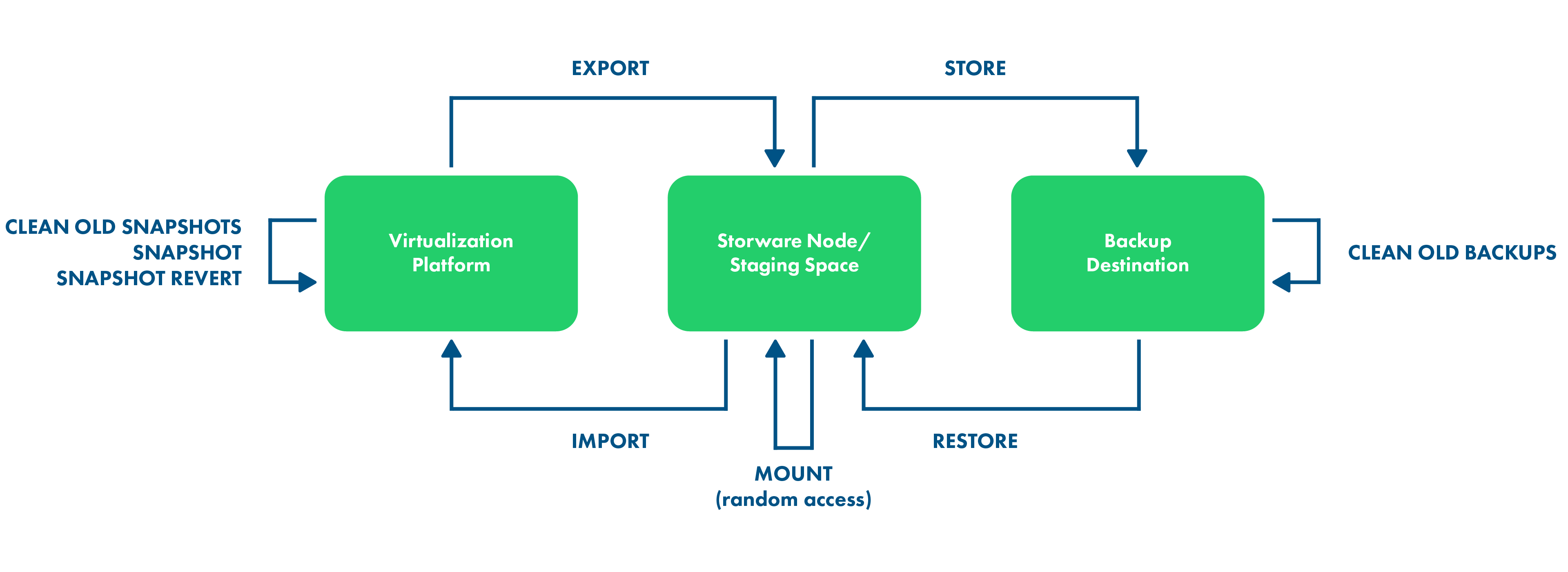 - Import - a task that imports data to the virtualization platform and recreates VM