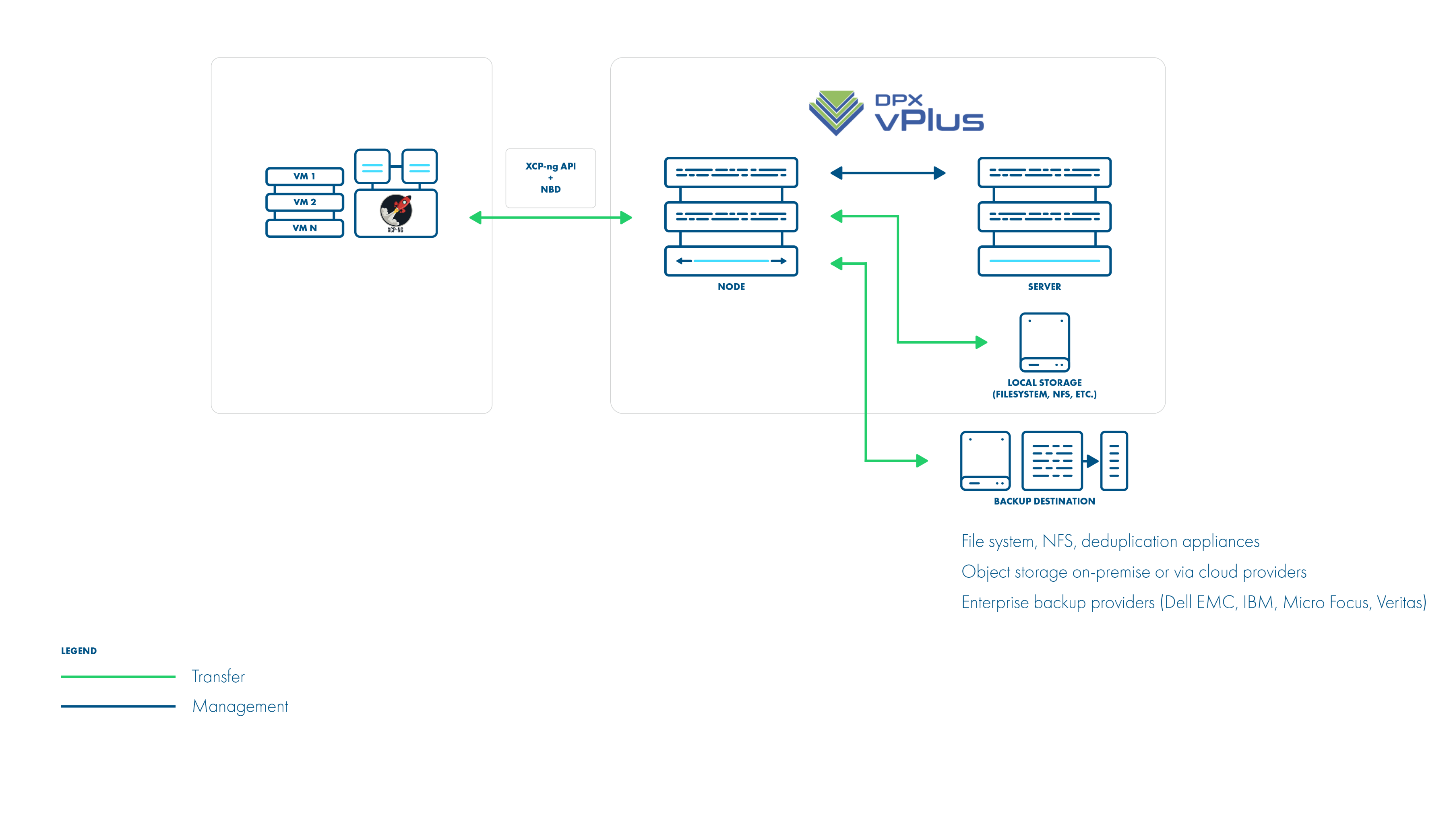 - data export directly from the hypervisor using hypervisor's API - both full (XVA) and delta (VHD for each disk)