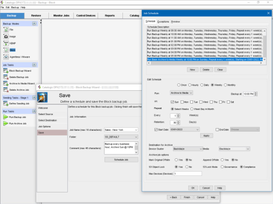 - In the Job Schedule section, edit the details of block backup jobs and archive jobs as needed, within the same job definition.