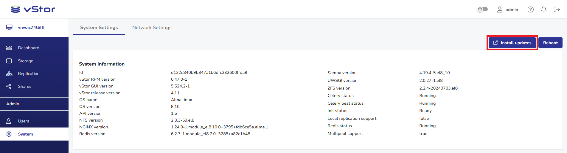 Updating vStor via Web Interface