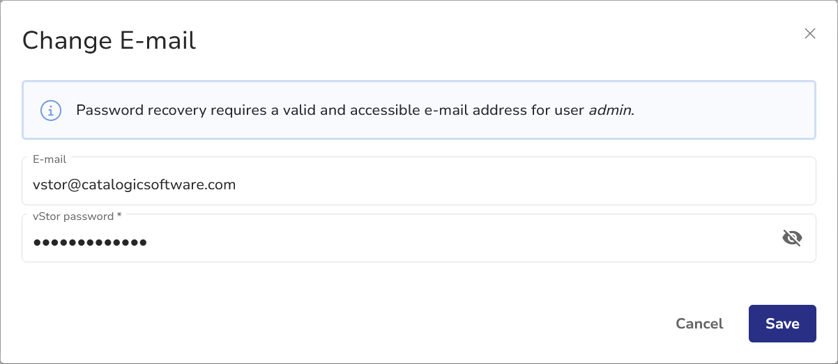 VStor allows you to assign an e-mail address to your vStor account, which allows you to request a password reset.
