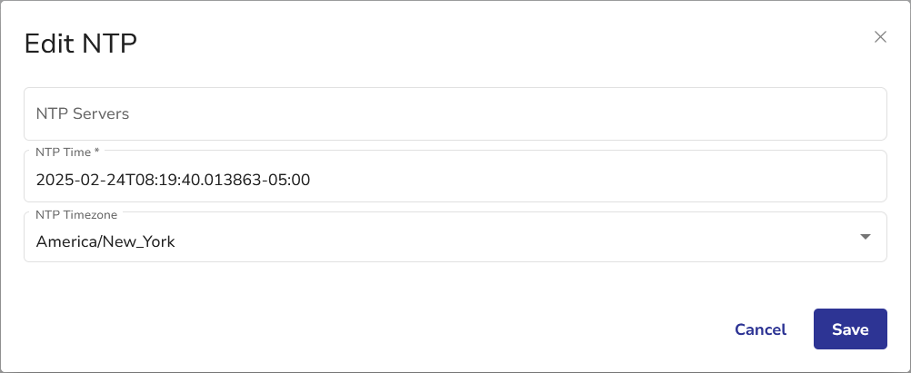 You can edit this section by clicking the Edit button to launch the Edit NTP dialog window.