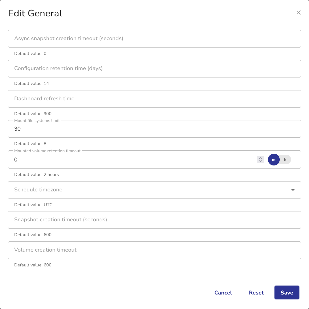 - Click the Reset button to return to default values.