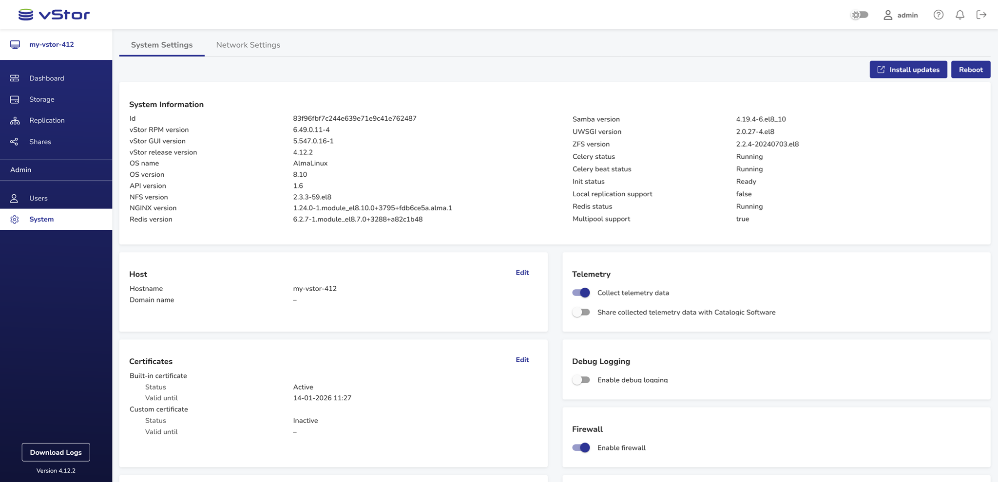 Configuring vStor System Settings