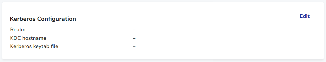 You can edit this section by clicking the Edit button to launch the Edit Kerberos Configuration dialog window.
