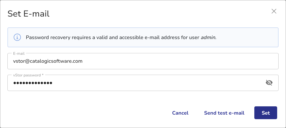 VStor allows you to assign an e-mail address to your vStor account, which allows you to request a password reset.