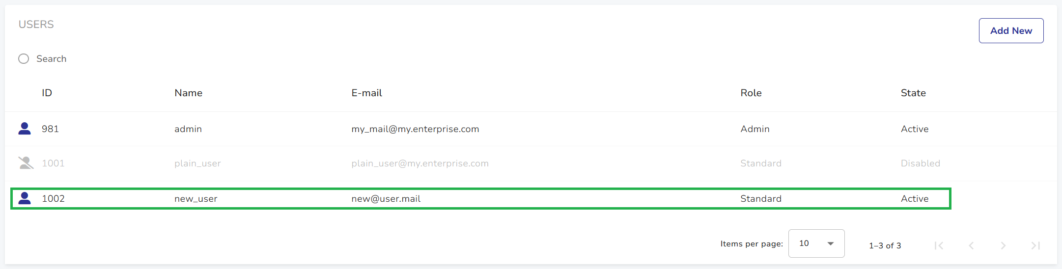 This section lists all user accounts existing in this vStor installation. Administrators may add, disable and remove users. See below for details.