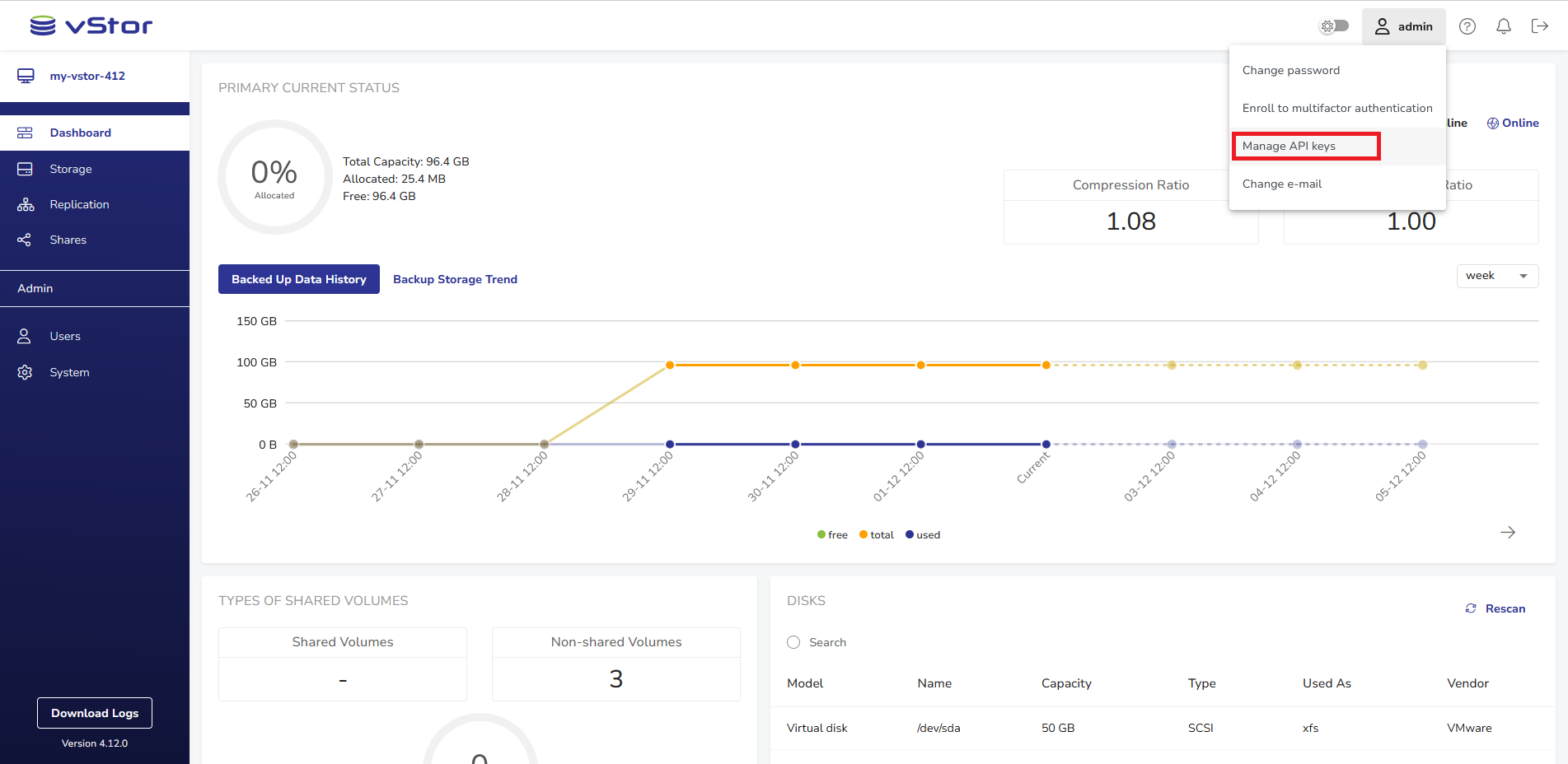 vStor allows generating API keys that can be used to authenticate with DPX instead of a username and password. This provides an alternative way to connect vStor nodes to DPX or establishing partnerships between vStors, especially for users with multifactor authentication enabled.