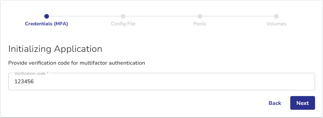 1. If the specified user account is protected with multifactor authentication, an additional step will be shown to provide the MFA verification code.