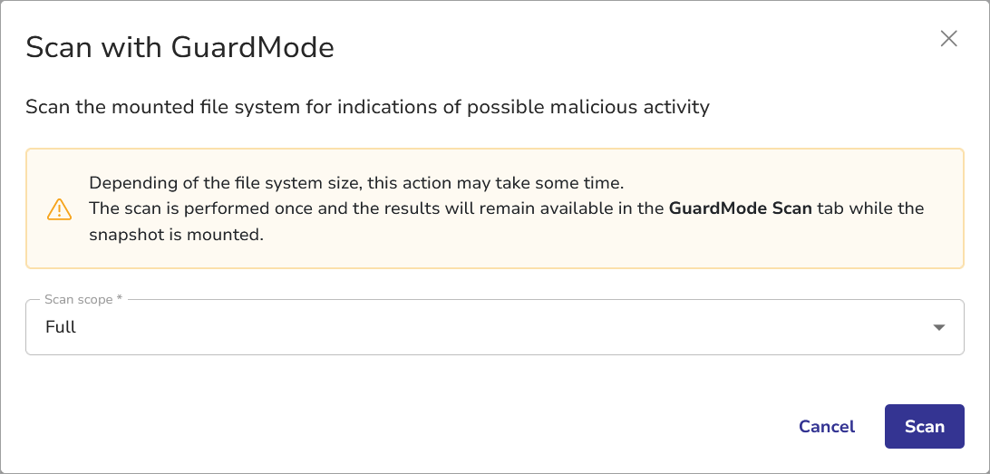 - Select Full to perform a full GuardMode scan of the mounted file system.