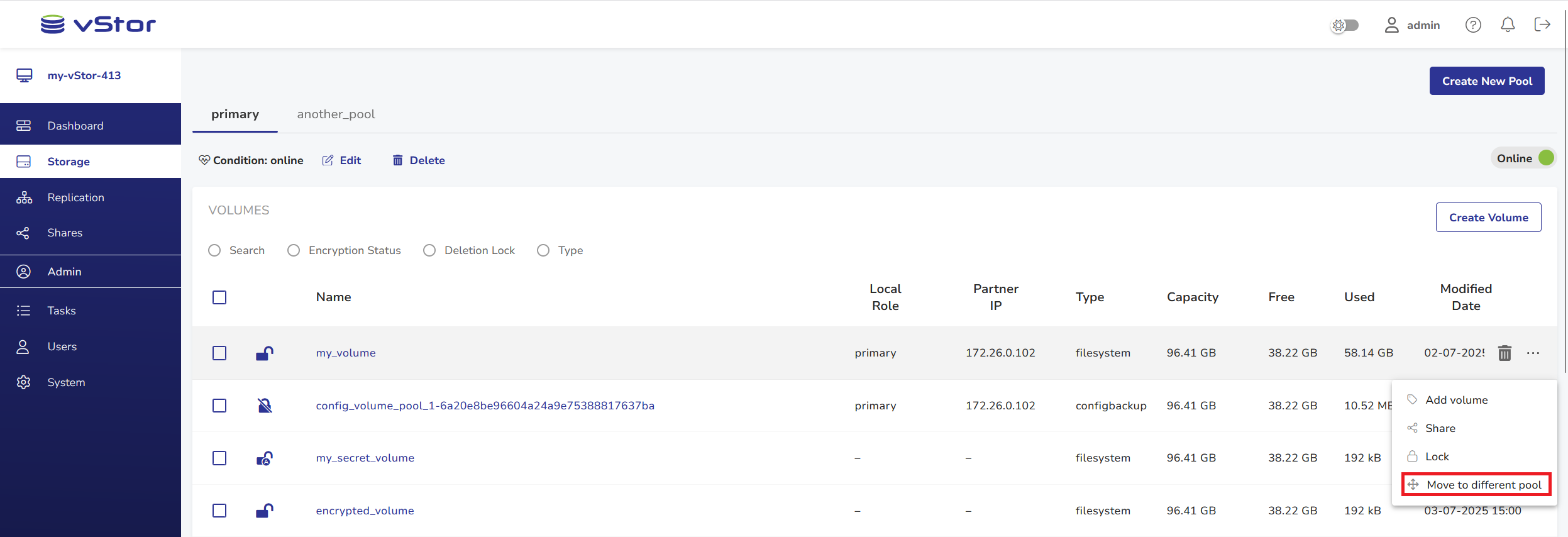 - Click More Actions (•••) and select Move to different pool to open the Move to Different Pool dialog window.
