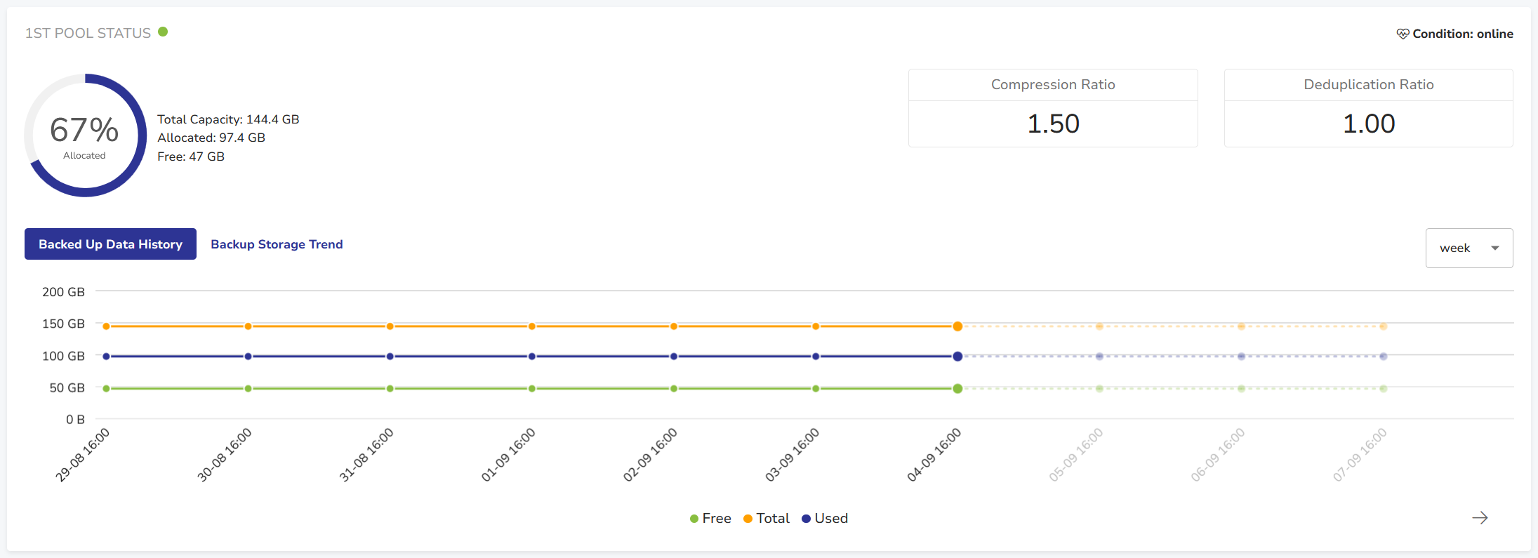 • backed up data history or backup storage trend.